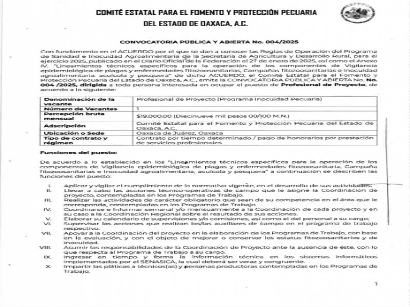 CONVOCATORIA 004-PROFESIONAL DE PROYECTO INO PEC 2025
