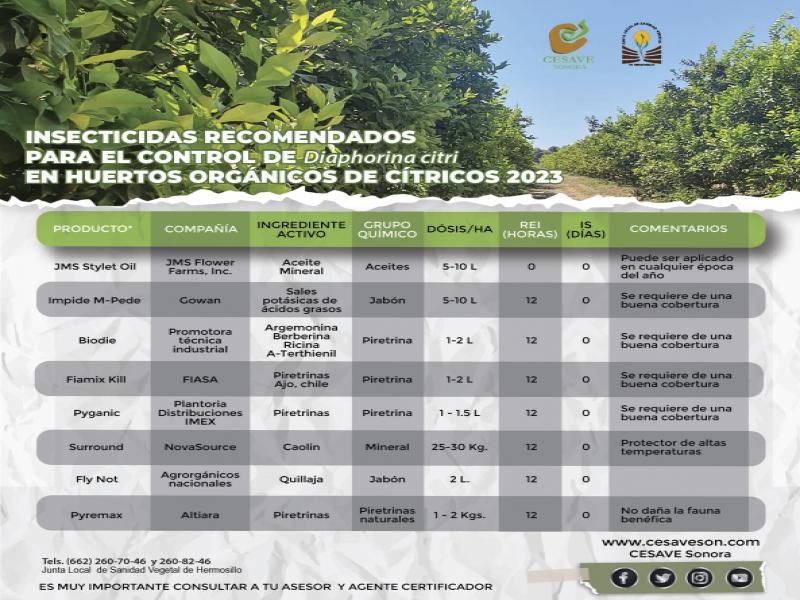 INSECTICIDAS RECOMENDADOS PARA EL CONTROL DE DIAFORINA CITRI