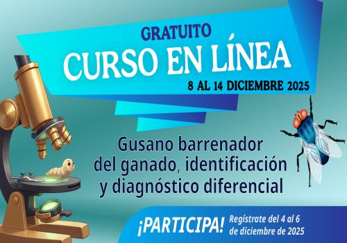 Con el propósito de que productores pecuarios, médicos veterinarios, comercializadores de ganado, estudiantes y público en general aprendan a reconocer heridas sospechosas de gusano barrenador del ganado (GBG), el Senasica impartirá un taller gratuito en línea, del 8 al 14 de diciembre de 2025.